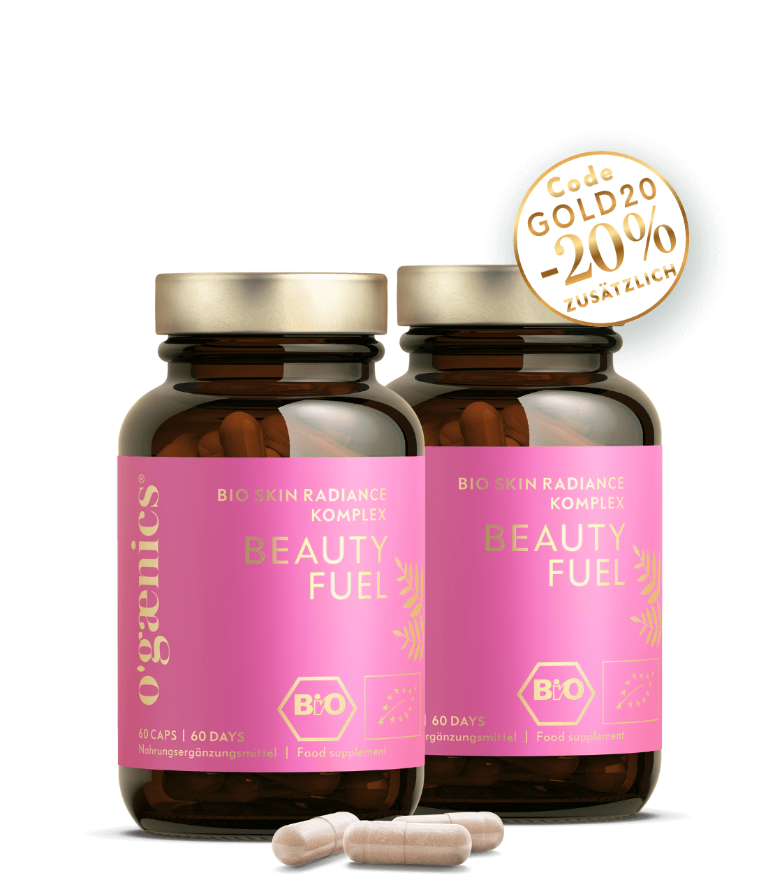 BEAUTY FUEL ist ein umfassendes Bio-Nahrungsergänzungsmittel für die Schönheit deiner Haut und zur Verzögerung der Hautalterung. Du kannst es gern mit anderen, ergänzenden Supplements aus dem Ogaenics Sortiment kombinieren. Wenn du Fragen zu einem Nahrungsergänzungsmittel hast, das du einnimmst, wende dich bitte an hello@ogaenics.com.