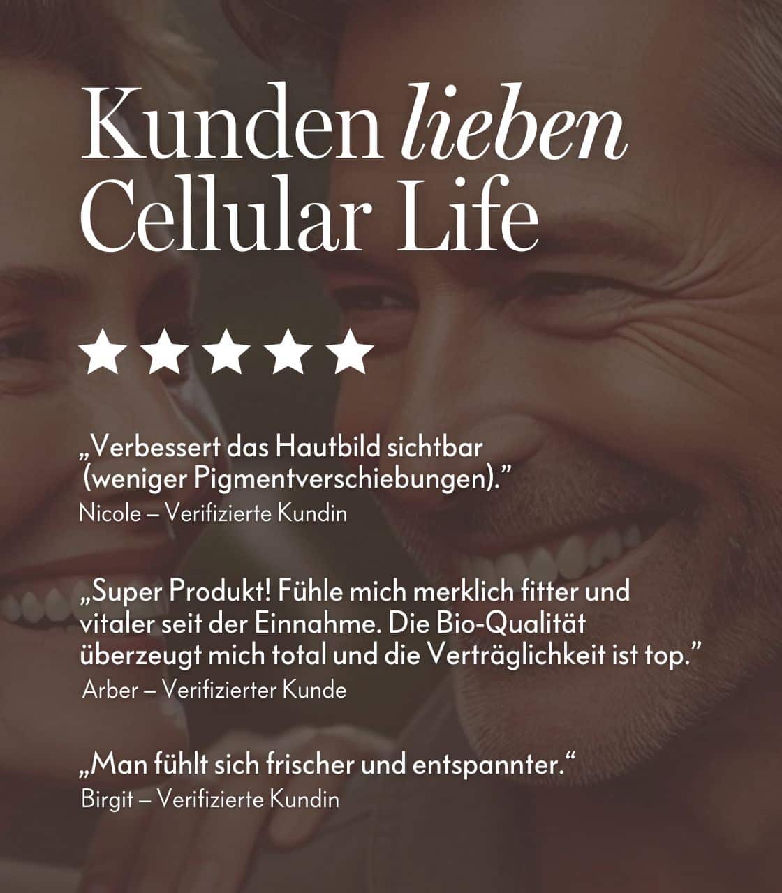 Ich nehme Cellular Life seit Längerem für den Zellschutz und zur Unterstützung des Immunsystems.
