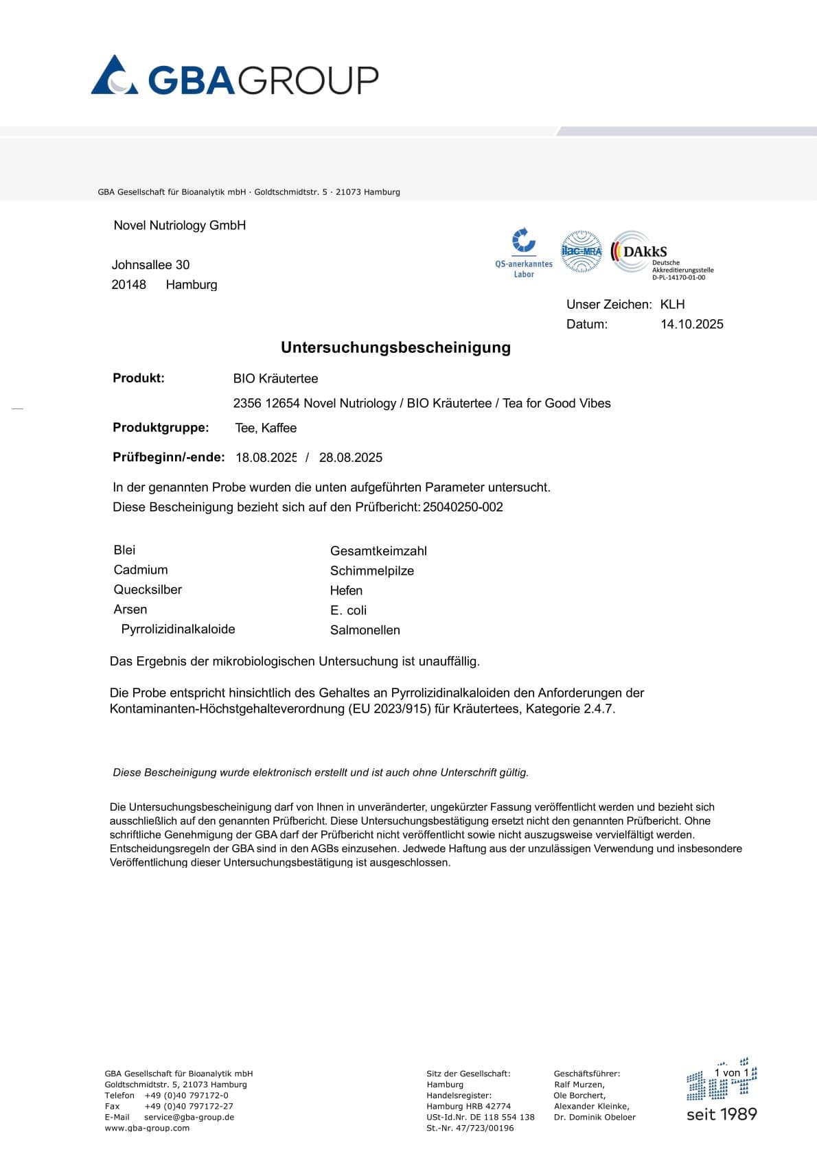 Unser Tea for Good Vibes trägt das EU-BIO-Siegel und steht für nachhaltige, kontrollierte Landwirtschaft. Wir legen großen Wert darauf, dass unsere Produkte regelmäßig auf ihre Qualität überprüft werden. So können wir sicherstellen, dass du nur das Beste erhältst.