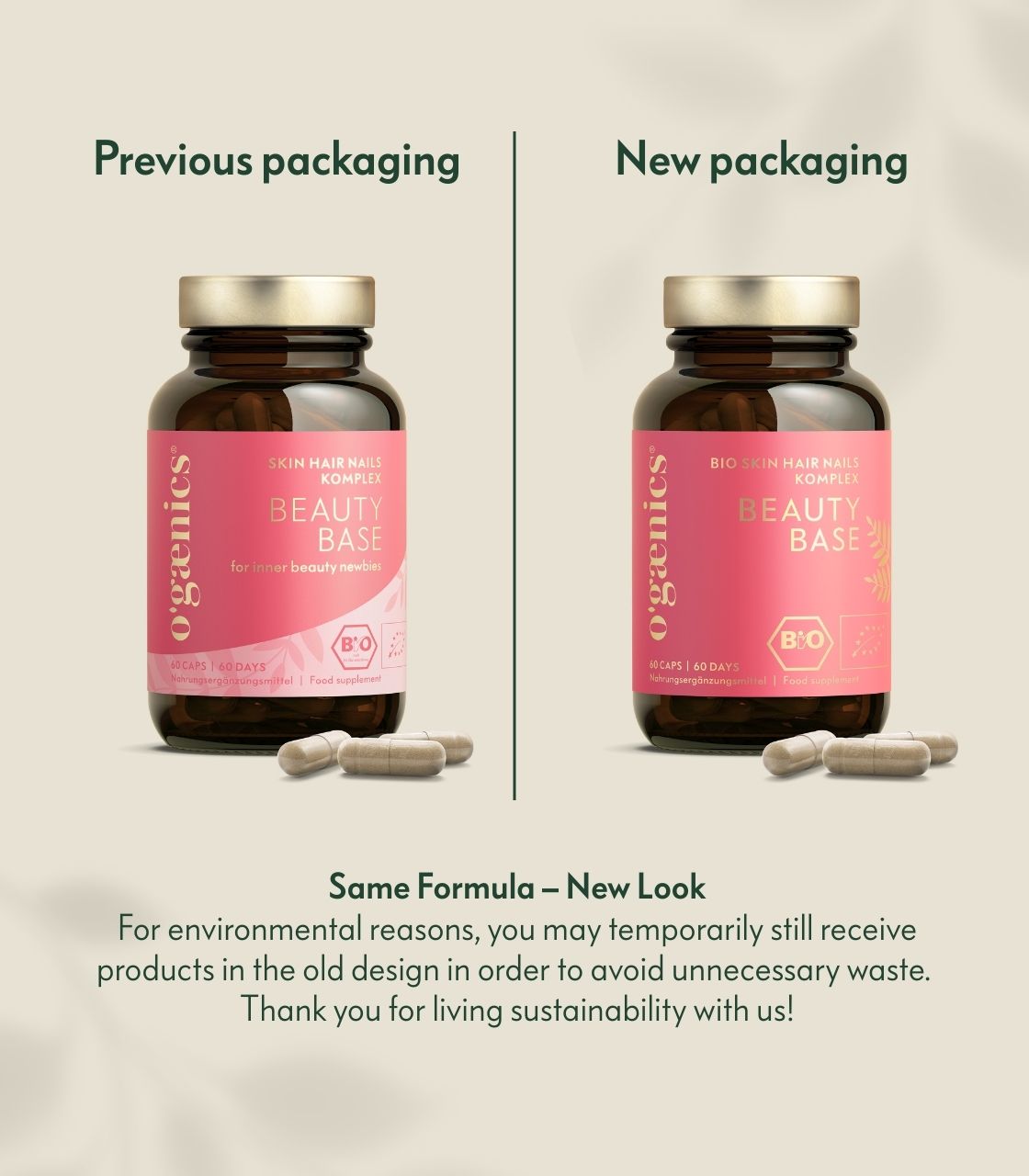 BEAUTY BASE is a purely herbal organic food supplement for skin, hair and nails. One capsule per day covers your daily requirement of zinc from organic guava leaves, vitamin C from organic amla, silicon from organic bamboo and biotin from organic basil and organic sunflower seeds. BEAUTY BASE supports beautiful skin, shiny hair and strong nails from the inside out and is the nutrient foundation for your beauty.