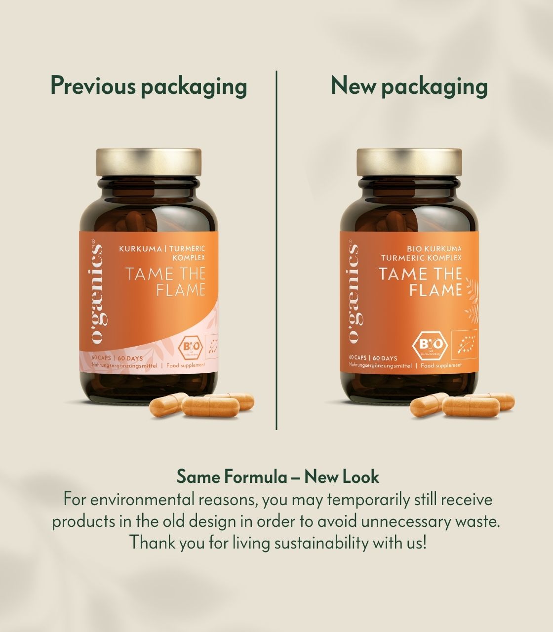 With turmeric, it pays to compare. Our TAME THE FLAME Organic Turmeric Complex is the only high-dose organic turmeric complex and guarantees you 315 mg of curcuminoids per capsule. For a comparable dose in organic quality, you had to take up to eight capsules a day with other suppliers. At Ogaenics, we make it much easier for you. Just one small capsule of TAME THE FLAME in the morning and you can get all the benefits of this great, powerful root.