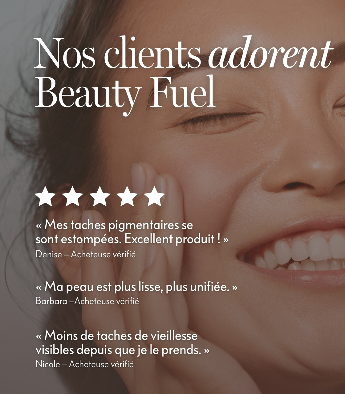 Beauty Fuel est le choix parfait pour toi si tu cherches une formule de soin de la peau complète qui combine la formation de collagène, l’élasticité, la rétention d’humidité et la protection cellulaire en un seul produit. Idéal pour ceux qui veulent le meilleur du collagène, de l’hyaluron, des antioxydants et du soutien de l’élasticité dans une capsule pratique.