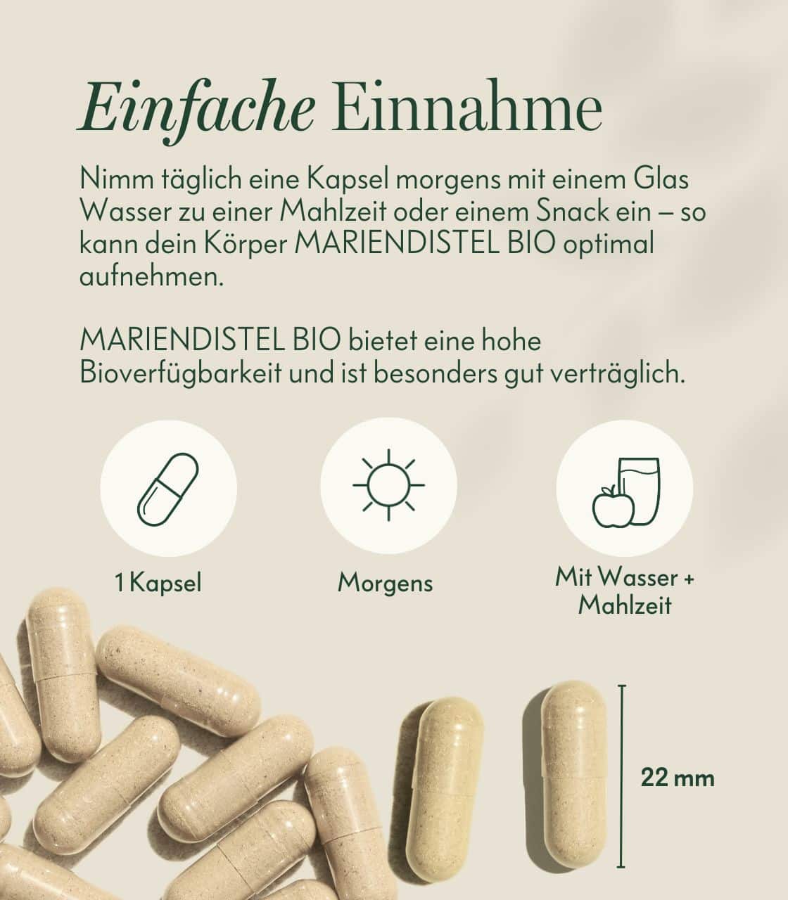 Mariendistel ist grundsätzlich für die regelmäßige Anwendung geeignet. Bei bestehenden Erkrankungen bitte ärztlich abklären.