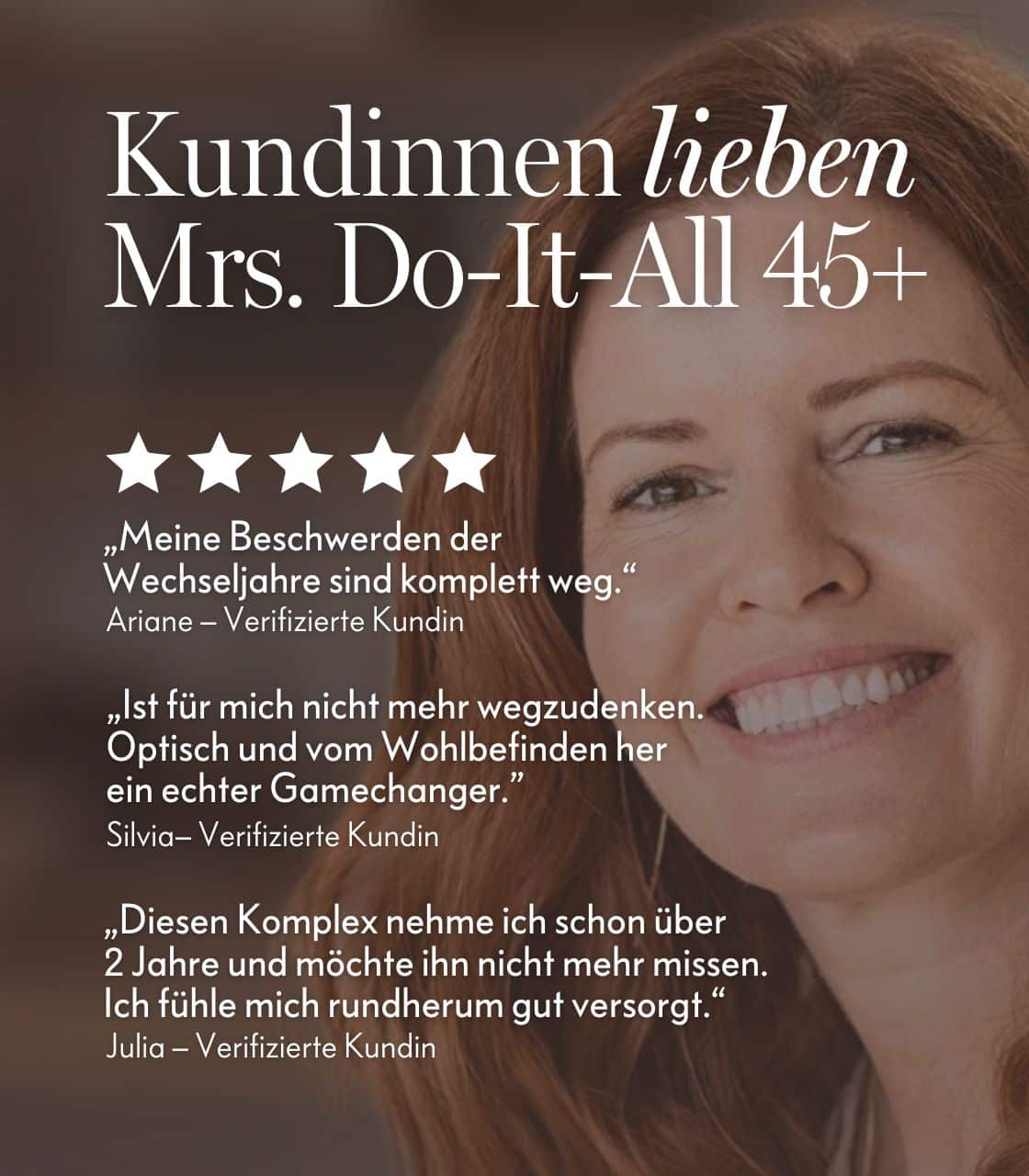 Mrs Do-It-All 45+ ist ein tolles Produkt! Sehr gut verträglich. Ich fühle mich sehr gut versorgt!
