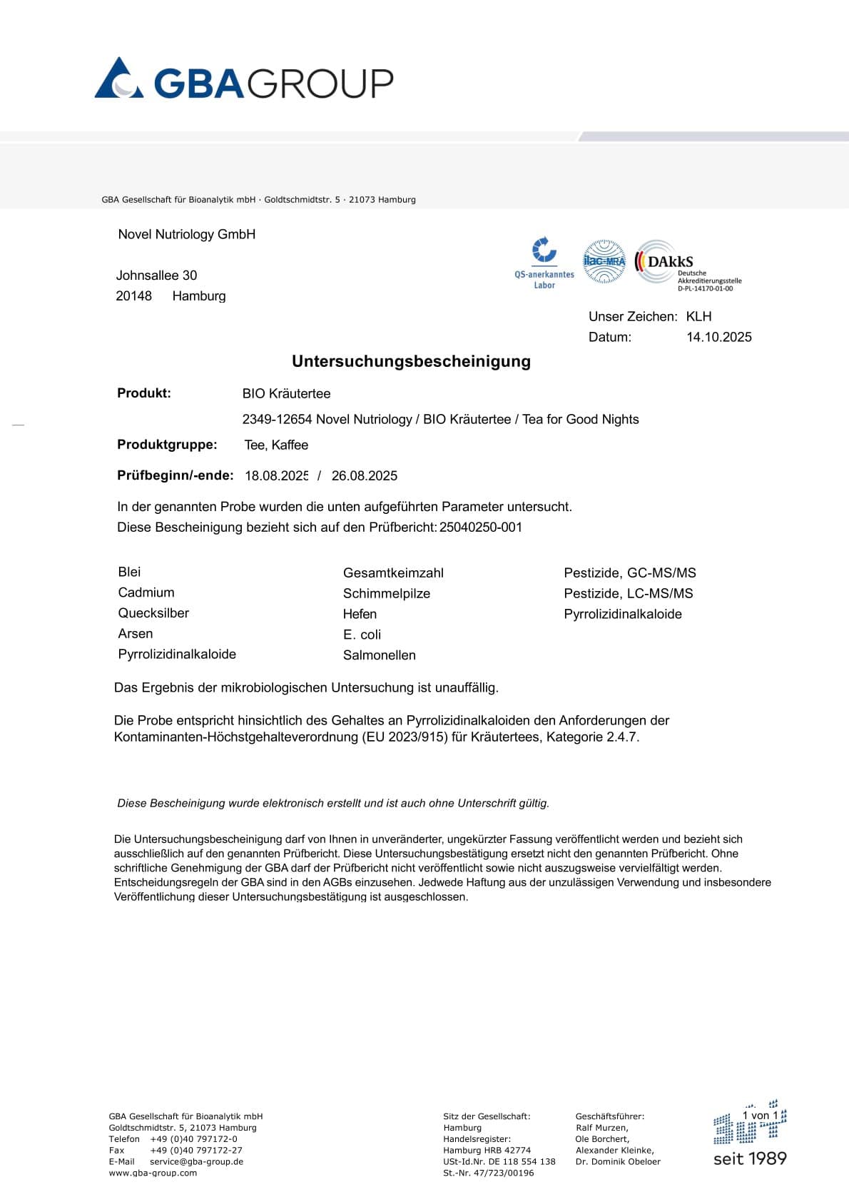 Unser Tea for Good Nights trägt das BIO-Siegel, das für nachhaltige und kontrollierte Landwirtschaft steht. Wir legen großen Wert darauf, dass unsere Produkte regelmäßig auf ihre Qualität überprüft werden. So können wir sicherstellen, dass du nur das Beste erhältst.
