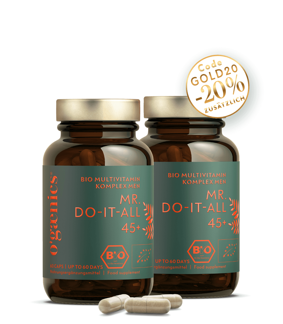 Most multis contain synthetic vitamins or isolated minerals that are produced in a laboratory. With us it’s different: all 17 nutrients come uncompromisingly from organic plant extracts. This makes MR Do-It-All 45+ unique in the world. You get a holistic, pure product that your body can utilize optimally.