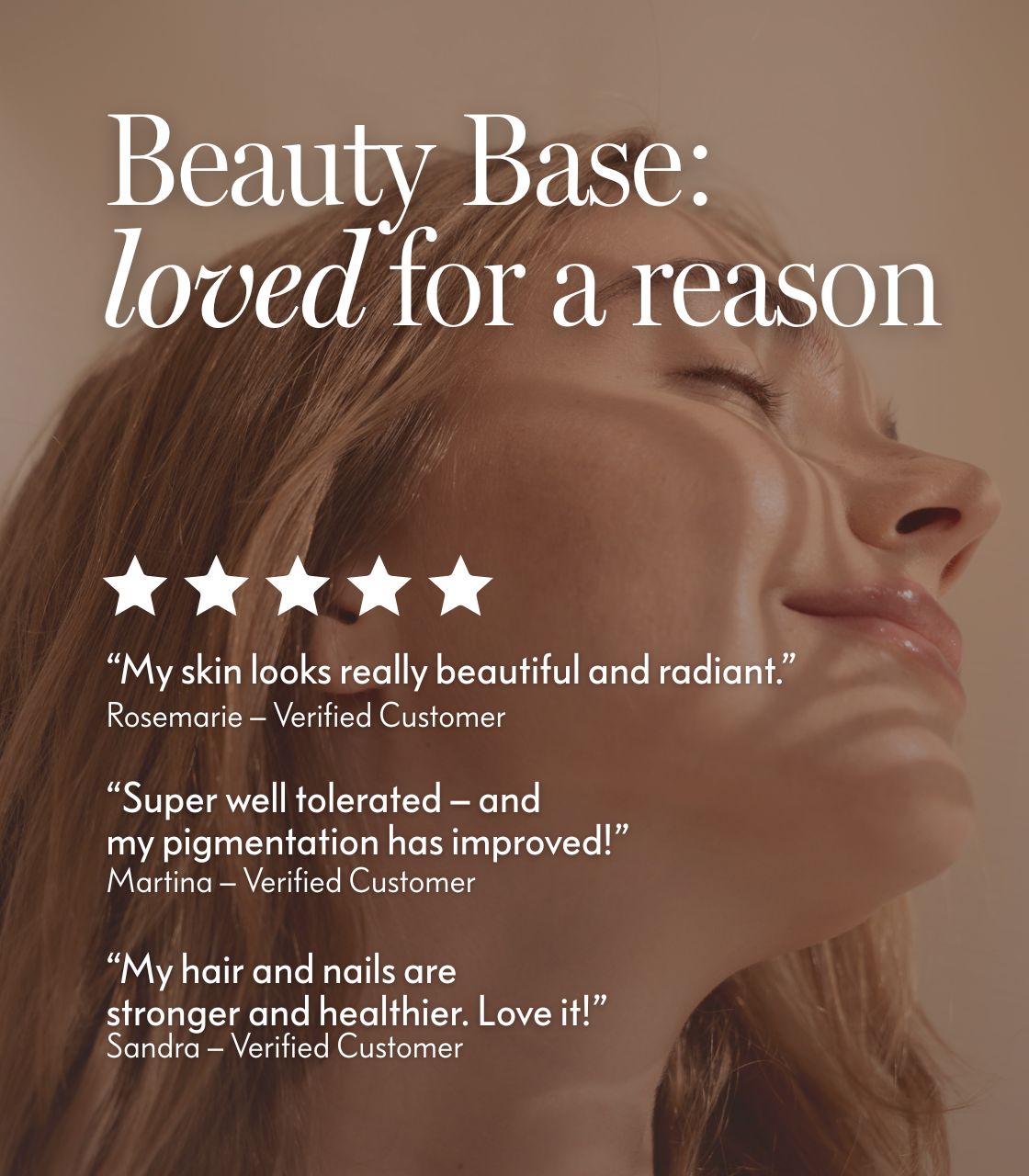 Ich bin sehr zufrieden mit Beauty Base. Meine Fingernägel sind besser und mein Haar glänzt