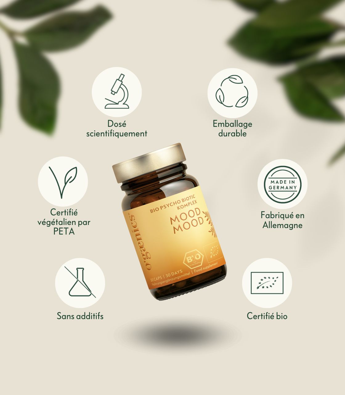 ✔ Contient des psychobiotiques de haute qualité, des plantes bio et des nutriments naturels