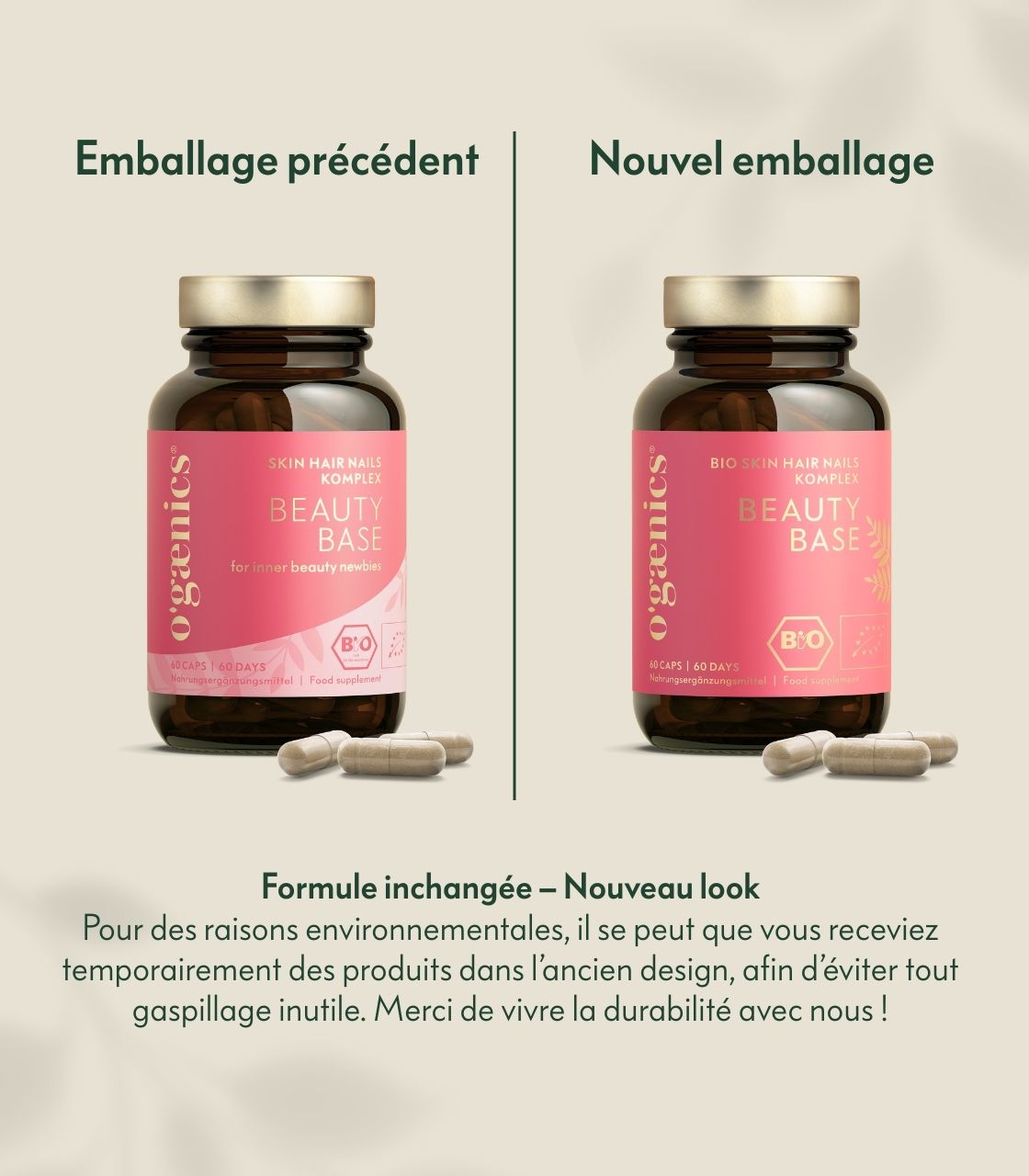 BEAUTY BASE est la première alternative certifiée bio aux complexes traditionnels pour la peau, les cheveux et les ongles, pour une peau éclatante, des cheveux brillants et des ongles forts.