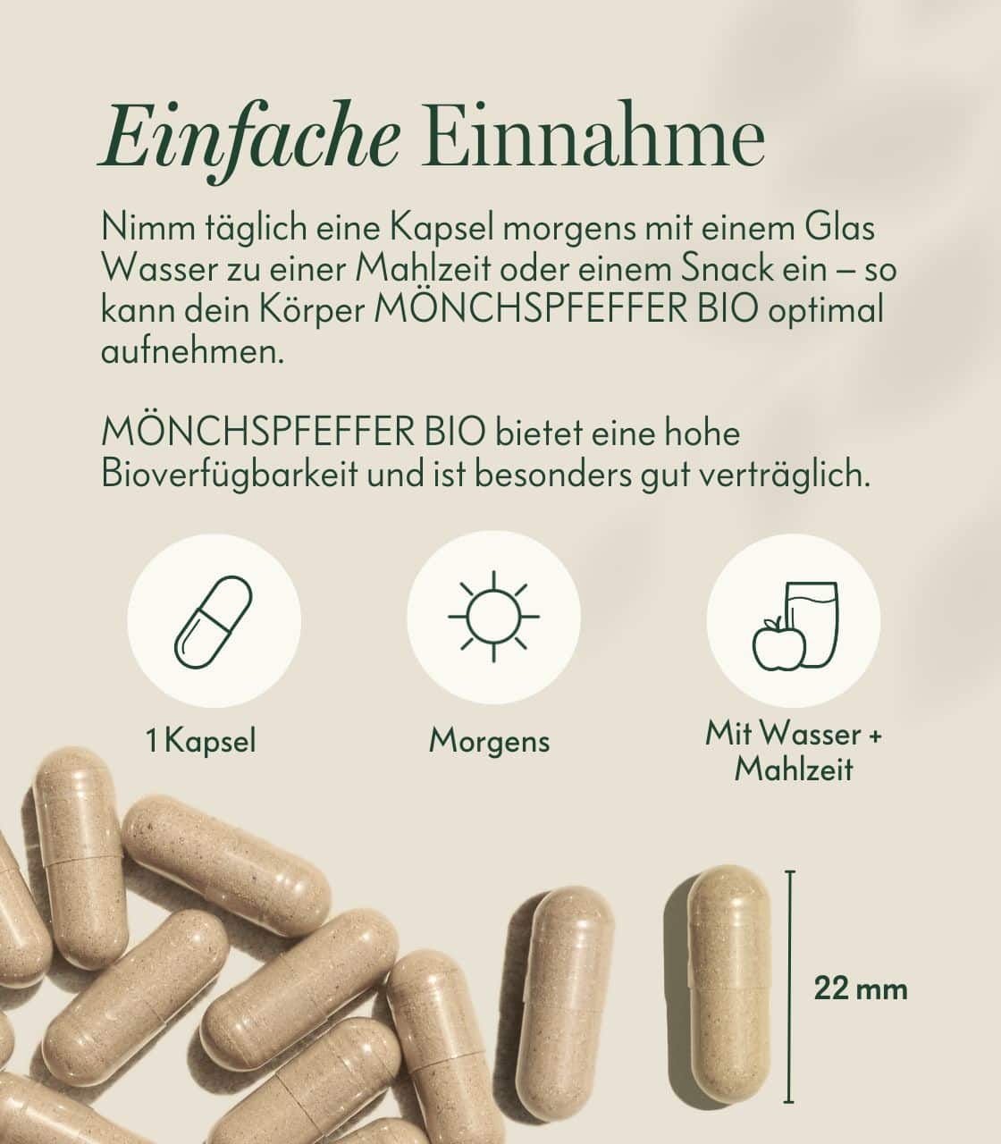 Le Gattilier est en principe adapté à une utilisation régulière. En cas de maladie existante ou de prise de préparations hormonales, nous recommandons de consulter un médecin.