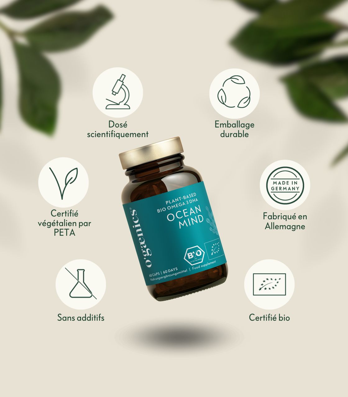 Oui. Ocean Mind est 100 % végétal, végétalien et certifié bio - sans ingrédients d’origine animale, sans gélatine.